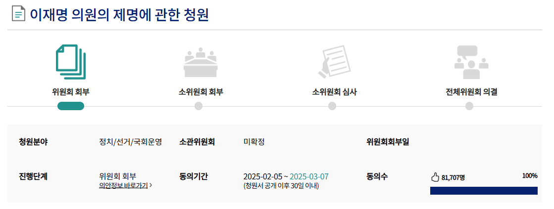 이재명 의원 제명 국민동의청원: 진행 상황과 절차