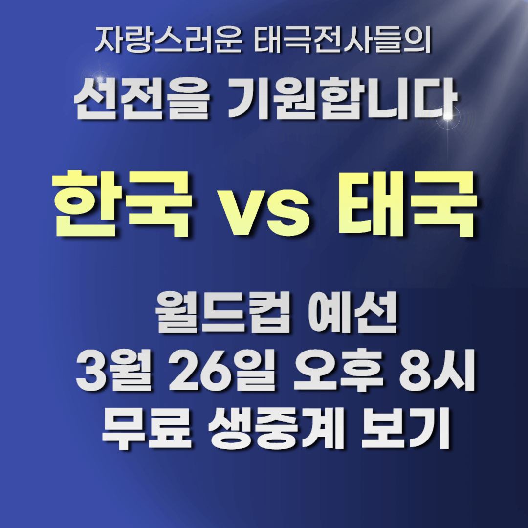 3월 26일 (화) 저녁 8시 태국 방콕에서 태국 대 한국의 월드컵 아시아 2차 예선 경기가 펼쳐집니다.